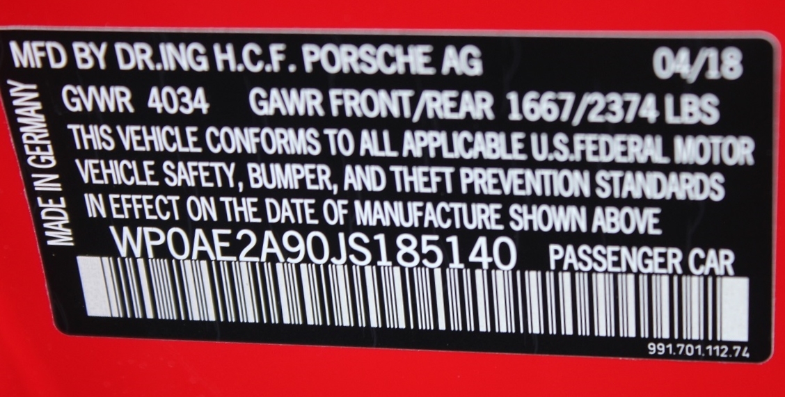 The Weissach Package, an $18K option is an absolute must. 20/21 inch Magnesium Wheels, a $13k option, was ordered, however, they were on back order and was just fulfilled by Porsche NA. So the car comes with Brand New Magnesium Wheels and Brand New Michelin Pilot Sport Cups 2 tires. Please see below for full option list.